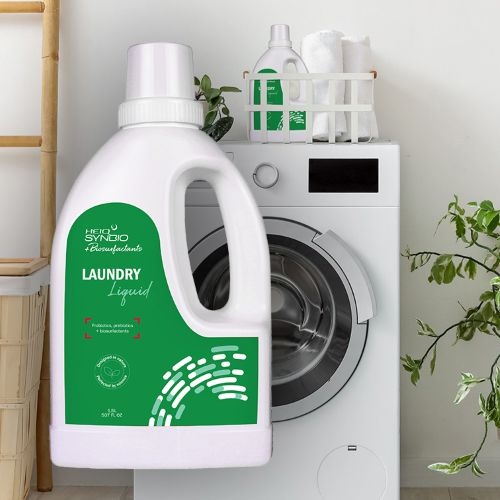 HeiQ offers a portfolio of microbial cleaning solutions for household and professional applications, including floor cleaners, textile sprays, laundry detergents, dishwasher detergents, toilet gels, and bathroom cleaners. The formulations combine probiotics, synbiotics, and fermentation derived biosurfactants and are developed for performance, material compatibility, and everyday usability. Biosurfactants support effective removal of grease and soils, while microbial systems continue working on residual organic matter over time.