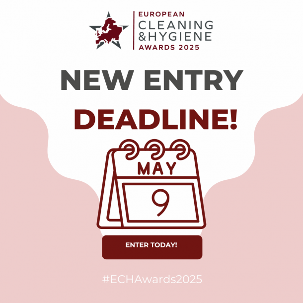 29th of April 2025In case you missed the news, the entry deadline for the European Cleaning & Hygiene Awards has been extended to Friday May 9. So you still have over a week to showcase your achievements and get involved in the only pan-European awards for the professional cleaning sector.