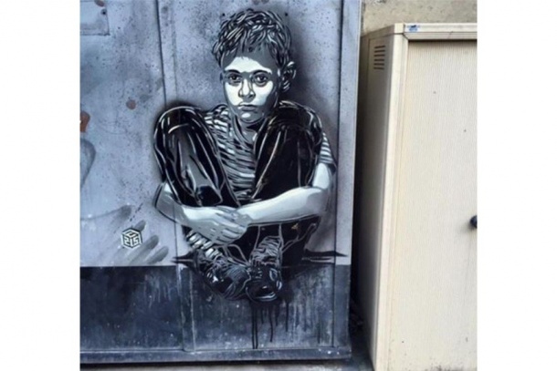 The town hall commissioned a street art mural by the country's top graffiti artist, C215, showing a sulking boy slumped against a wall.