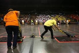 A bed-making contest assesses contestants on their speed and accuracy, and other events are the Buffer Pad Toss, where staff hurl floorpads to team-mates on the other side of a room with the aid of a toilet plunger handle; and the Toilet Paper Toss where entrants throw as many toilet rolls into a bin as they can against the clock.