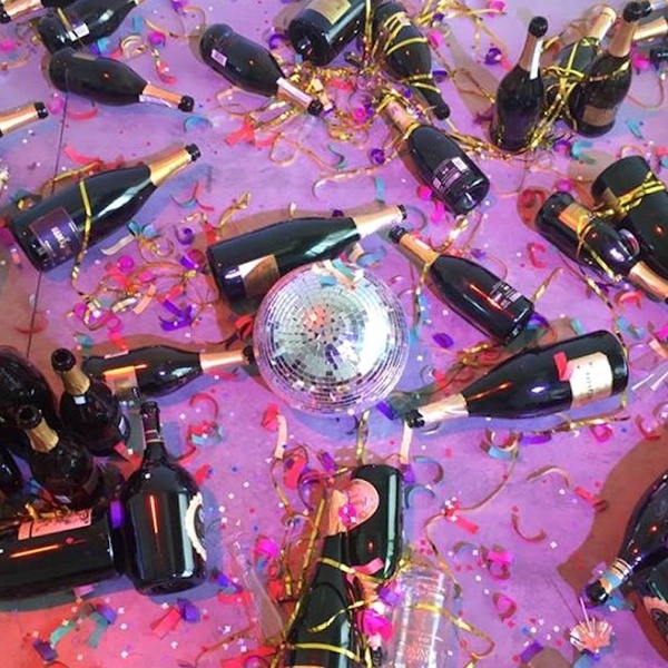 Meant to represent consumerism, hedonism and the blending of revelry and politics of 1980s Italy, the installation depicted the aftermath of a party, with empty champagne bottles, confetti and cigarette stubs scattered all over the floor.