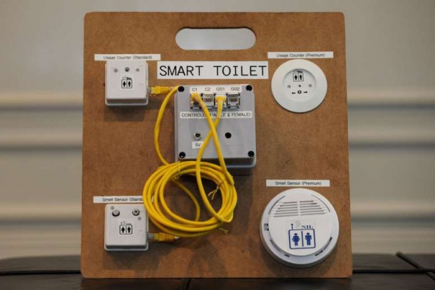 The system has been trialled in more than 60 Singapore venues over the past two years including the food court of the National University Hospital Kopitiam. A spokesman described the gadget as a convenient way of obtaining real-time information on usage and odour levels.