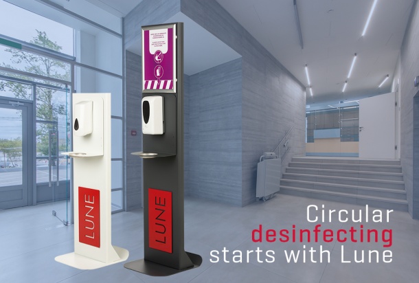 Fortunately, disinfection has already become a daily routine for many people. You can make it easy for everyone in your own building with the unique disinfection column developed by Lune. This multifunctional column has a modular structure, you are able to add various options and functionalities to it, such as a poster holder, display, tissue dispenser, waste bin, coat rack and even company logo and matching RAL colour. This allows you to perfectly match the overall design to your corporate identity.