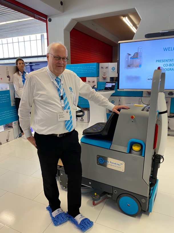 Products on the stand include the Cobotic 1700 vacuum cleaner and the Cobotic 65 autonomous scrubber dryer which is said to be able to automatically navigate complex environments.