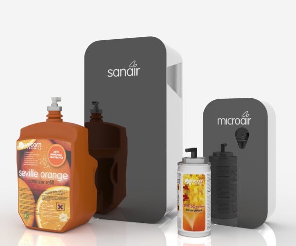 Sanair is used in the washroom to eliminate odours, fragrance the air and reduce stains with Unicorn's patented sanitising system.